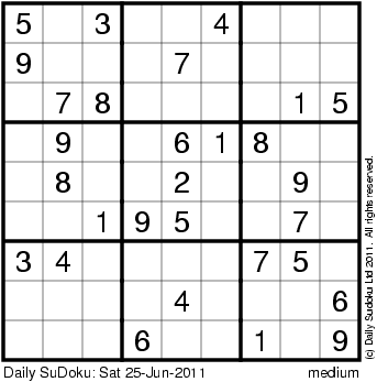 The Daily SuDoku: Sat 25-Jun-2011