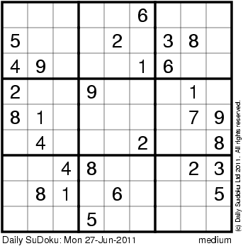The Daily SuDoku: Mon 27-Jun-2011
