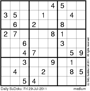 The Daily SuDoku: Fri 29-Jul-2011