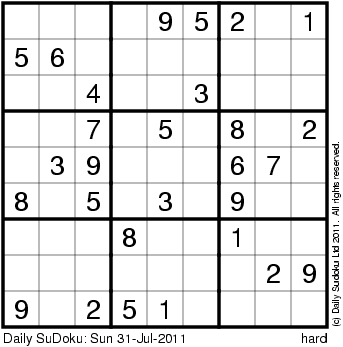 The Daily SuDoku: Sun 31-Jul-2011