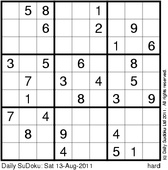 The Daily SuDoku: Sat 13-Aug-2011