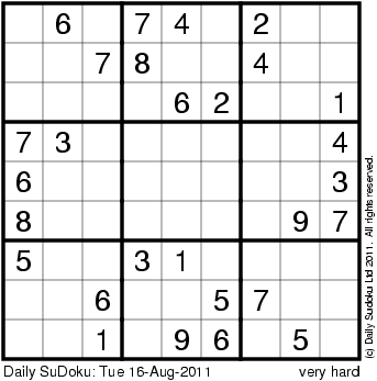 The Daily SuDoku: Tue 16-Aug-2011