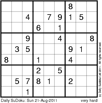 The Daily SuDoku: Sun 21-Aug-2011