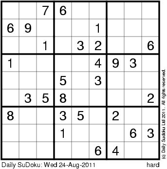 The Daily SuDoku: Wed 24-Aug-2011