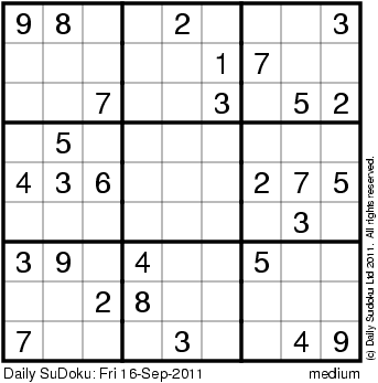 The Daily SuDoku: Fri 16-Sep-2011