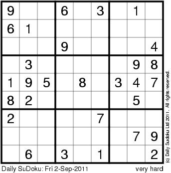 The Daily SuDoku: Fri 2-Sep-2011