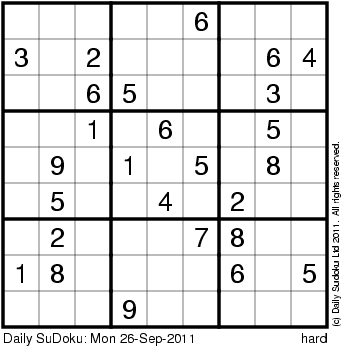 The Daily SuDoku: Mon 26-Sep-2011