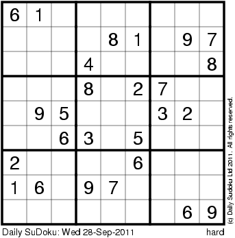 The Daily SuDoku: Wed 28-Sep-2011