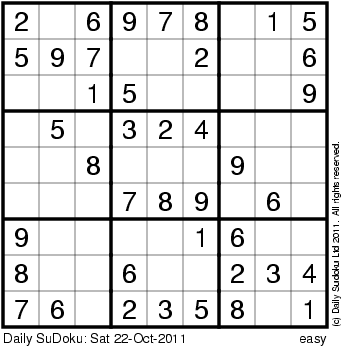 The Daily SuDoku: Sat 22-Oct-2011