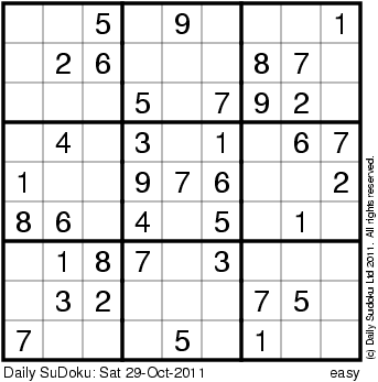 The Daily SuDoku: Sat 29-Oct-2011