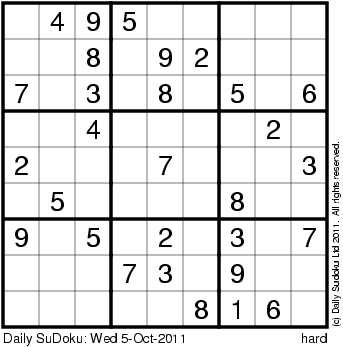 The Daily SuDoku: Wed 5-Oct-2011