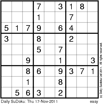 The Daily SuDoku: Thu 17-Nov-2011