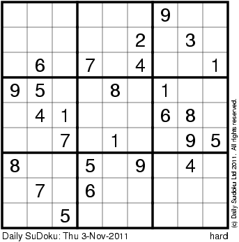 The Daily SuDoku: Thu 3-Nov-2011