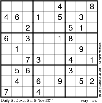 The Daily SuDoku: Sat 5-Nov-2011
