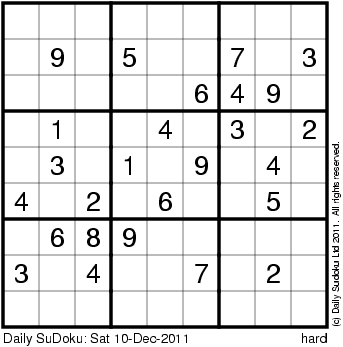 The Daily SuDoku: Sat 10-Dec-2011