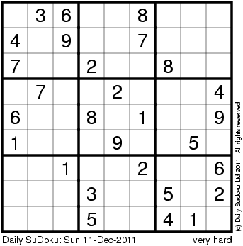 The Daily SuDoku: Sun 11-Dec-2011