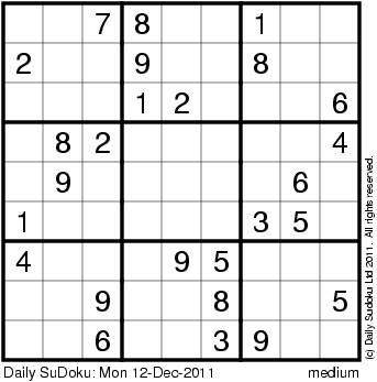 The Daily SuDoku: Mon 12-Dec-2011
