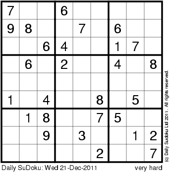 The Daily SuDoku: Wed 21-Dec-2011