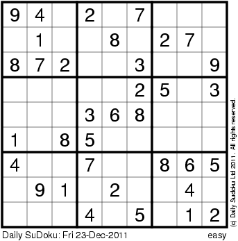 The Daily SuDoku: Fri 23-Dec-2011
