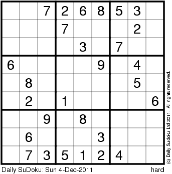 The Daily SuDoku: Sun 4-Dec-2011