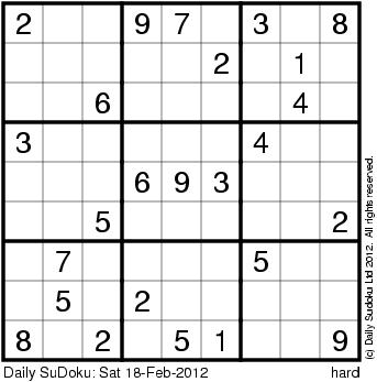 The Daily SuDoku: Sat 18-Feb-2012