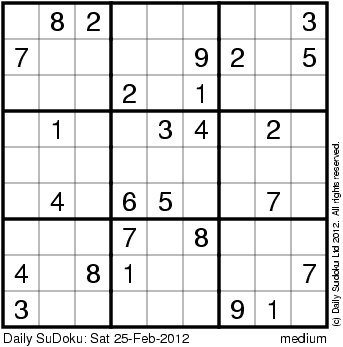 The Daily SuDoku: Sat 25-Feb-2012