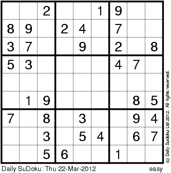 The Daily SuDoku: Thu 22-Mar-2012