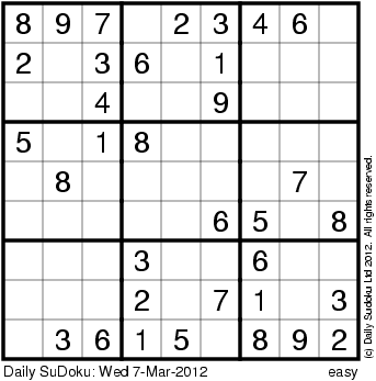 The Daily SuDoku: Wed 7-Mar-2012