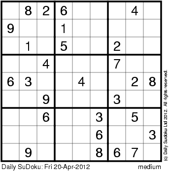 The Daily SuDoku: Fri 20-Apr-2012
