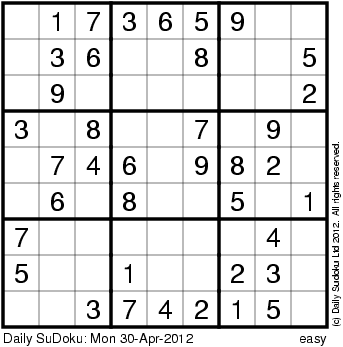 The Daily SuDoku: Mon 30-Apr-2012