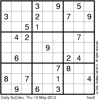 The Daily SuDoku: Thu 10-May-2012