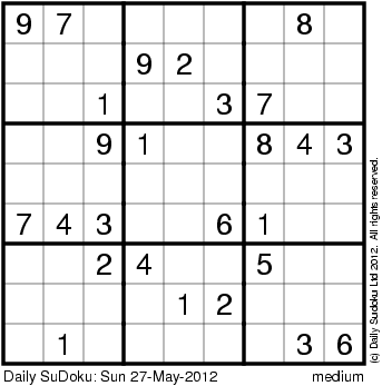 The Daily SuDoku: Sun 27-May-2012