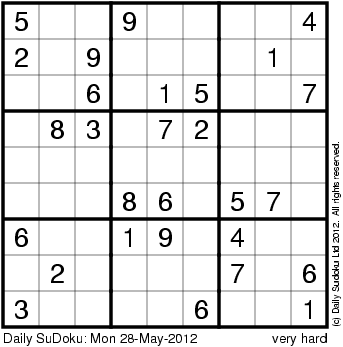 The Daily SuDoku: Mon 28-May-2012
