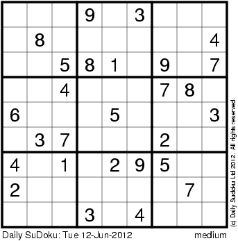 The Daily SuDoku: Tue 12-Jun-2012