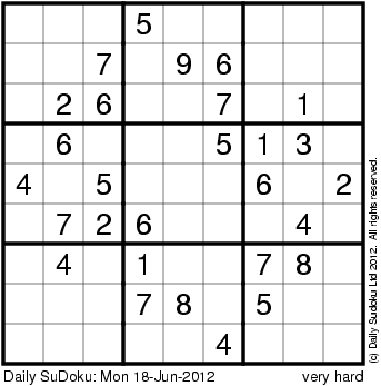 The Daily SuDoku: Mon 18-Jun-2012