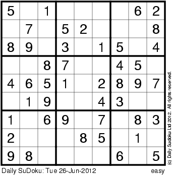 The Daily SuDoku: Tue 26-Jun-2012