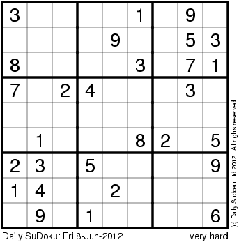 The Daily SuDoku: Fri 8-Jun-2012