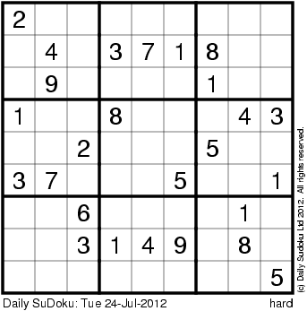 The Daily SuDoku: Tue 24-Jul-2012