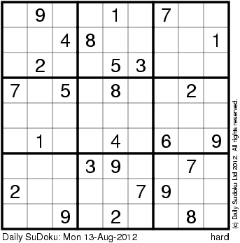 The Daily SuDoku: Mon 13-Aug-2012