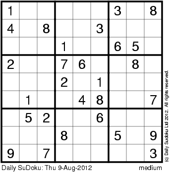 The Daily SuDoku: Thu 9-Aug-2012