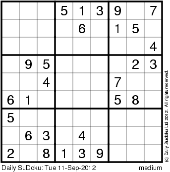 The Daily SuDoku: Tue 11-Sep-2012