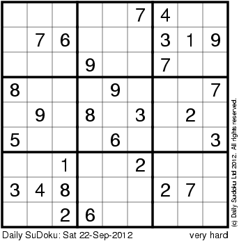 The Daily SuDoku: Sat 22-Sep-2012