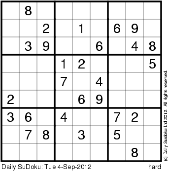 The Daily SuDoku: Tue 4-Sep-2012