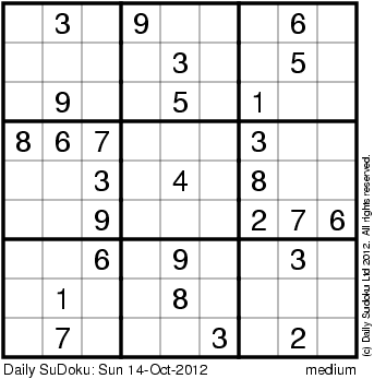 The Daily SuDoku: Sun 14-Oct-2012