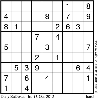 The Daily SuDoku: Thu 18-Oct-2012