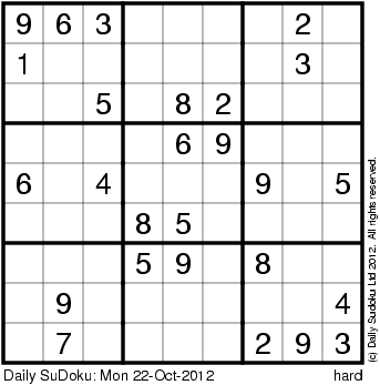 The Daily SuDoku: Mon 22-Oct-2012