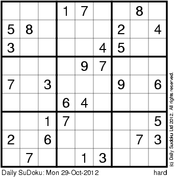 The Daily SuDoku: Mon 29-Oct-2012
