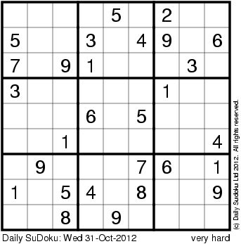 The Daily SuDoku: Wed 31-Oct-2012