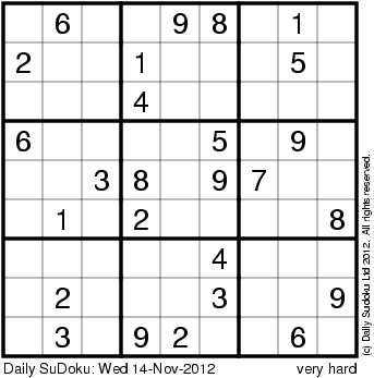 The Daily SuDoku: Wed 14-Nov-2012