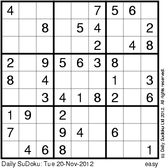 The Daily SuDoku: Tue 20-Nov-2012